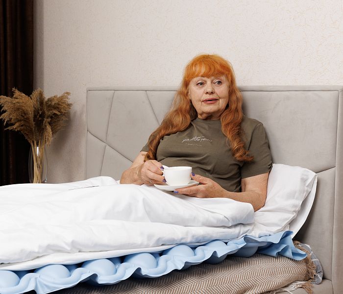 Для ослабленного и больного пожилого человека, который не встает с кровати, рекомендуется приобрести противопролежневый матрас. Наилучшими характеристиками обладают динамические модели. Они состоят из полых секций, заполняемых воздухом при помощи компрессора. Давление внутри ячеек регулярно меняется, создавая массажный эффект.