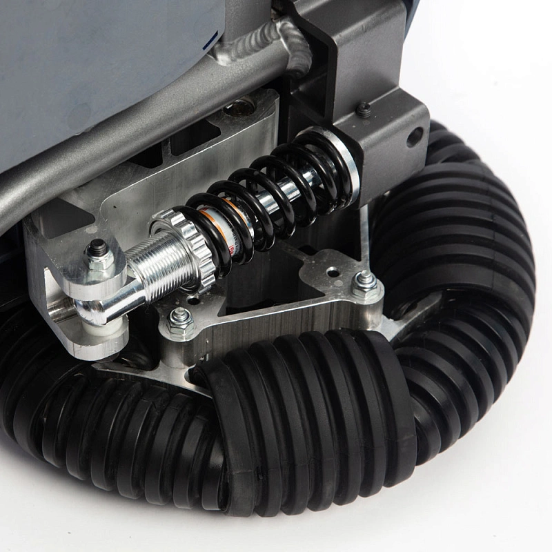 Складывание коляски в одно касание через пульт управления или смартфон делает ее компактной для транспортировки и хранения и комфортной для эксплуатации. Инновационная передняя подвеска с всенаправленными колесами и надежными амортизаторами обеспечивает максимальный комфорт при движении по неровной дороге.