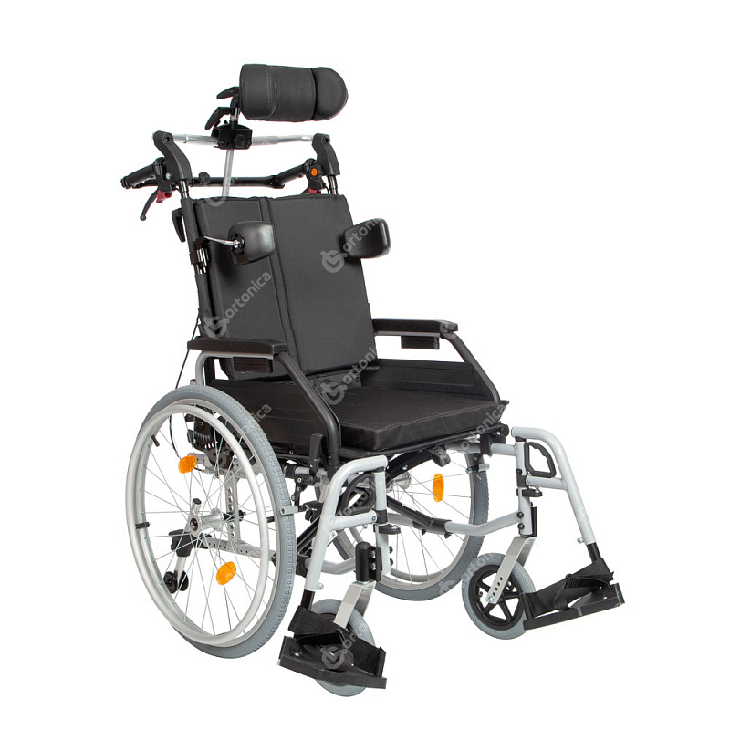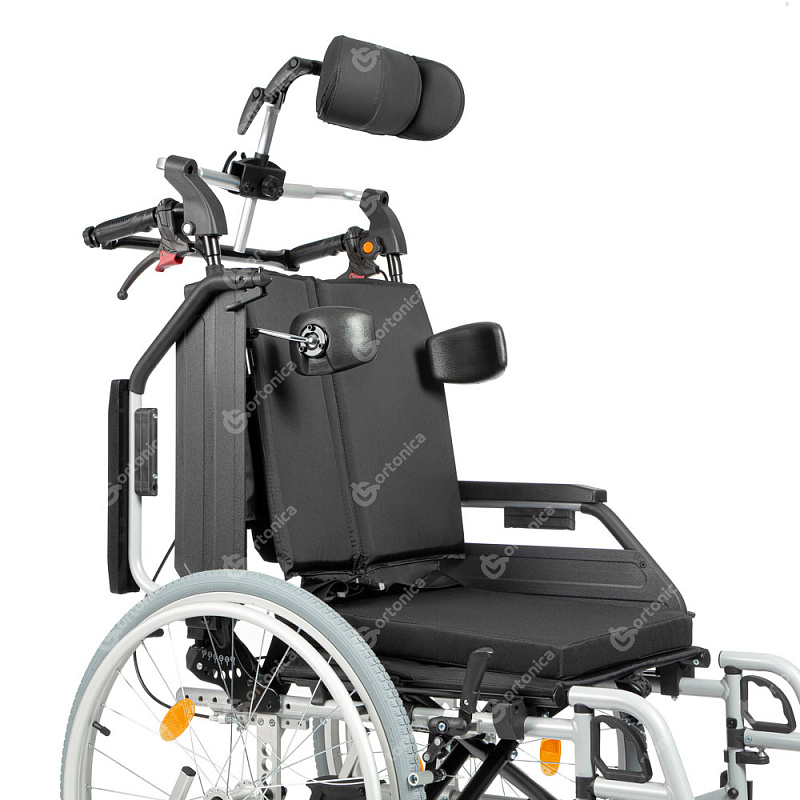 Кресло-коляска для инвалидов Ortonica Delux 500 обеспечивает комфорт пользователя за счет системы регулировки угла наклона спинки. Подголовник и боковые поддержки обеспечивают правильное положение пользователя в коляске. Изделие оснащено широким диапазоном регулировок, что позволяет настроить коляску под индивидуальные потребности пользователя. Съемная распорка спинки, колесные антиопрокидыватели с упором, ручки для сопровождающего, оснащенные тормозом с возможностью фиксации положения обеспечивают комфорт для сопровождающего лица.