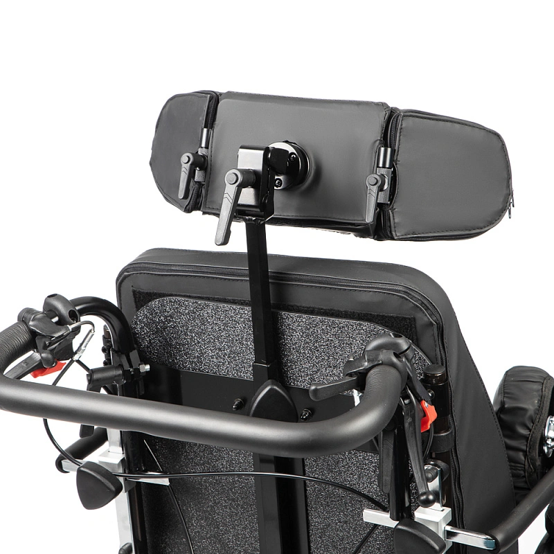 • Спинка, плавно регулируемая по углу наклона при помощи рычагов на ручках для сопровождающего лица