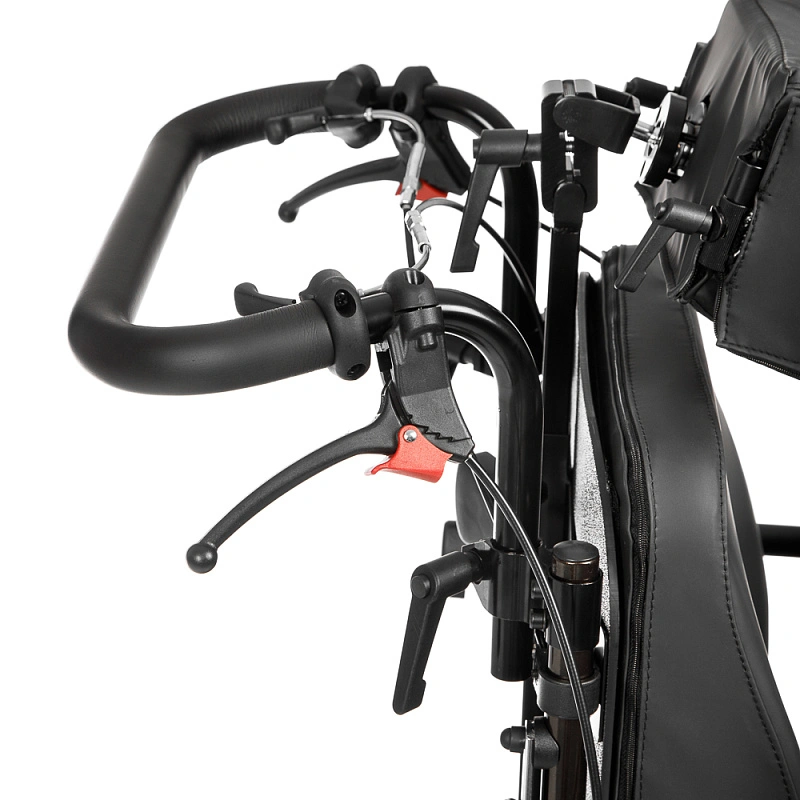 Спинка, регулируемая по углу наклона при помощи рычагов на ручках для сопровождающего лица Спинка, регулируемая по углу наклона при помощи рычагов на ручках для сопровождающего лица