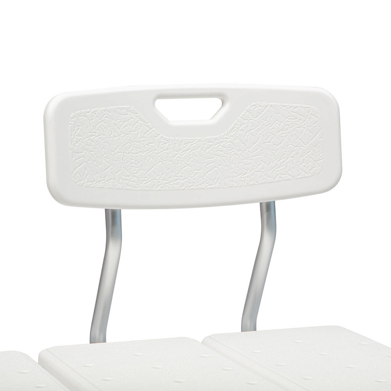 Стул оснащен быстросъемным подлокотником для дополнительной опоры, а также переставной спинкой, которую возможно установить в зависимости от расположения ванны или душевой кабины.