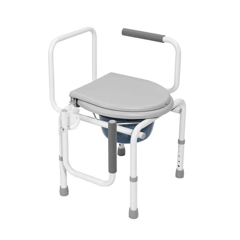 Кресло инвалидное с санитарным оснащением Ortonica по ТУ 9452-002-66445146-2016 TU 3 имеет откидные подлокотники с мягкими накладками для облегчения пересаживания и быстросъемную спинку.