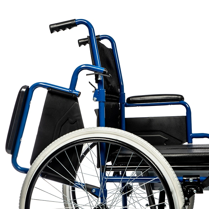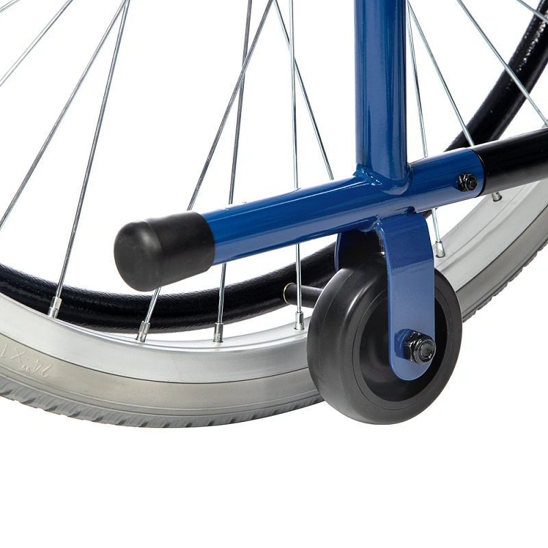 Транзитные колеса уменьшают габаритную ширину, позволяя сопровождающему лицу перемещать коляску в узких коридорах, лифтах, ванных комнатах и других тесных помещениях.
