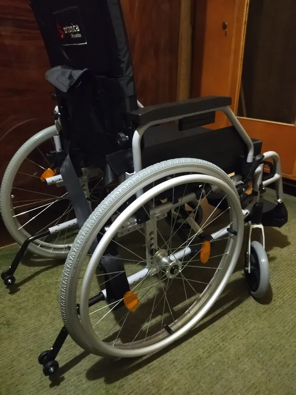коляска качественная, легкая, простая в обращении, быстро складывается и проезжает в узкой квартире во все двери ( но только в размере сиденья 43 см) ! Учитывайте внешние габариты при выборе сиденья. Единственный существенный недостаток - плохо переезжает пороги, не может даже 1,5 см перескочить без усилий. А вот ещё не хватает стояночного тормоза, есть только ручной у сопровождающего лица. Если инвалид захочет самостоятельно пересесть из/в неё, то она может укатиться, да и так,если будет стоять под уклоном без присмотра,то может укатиться .