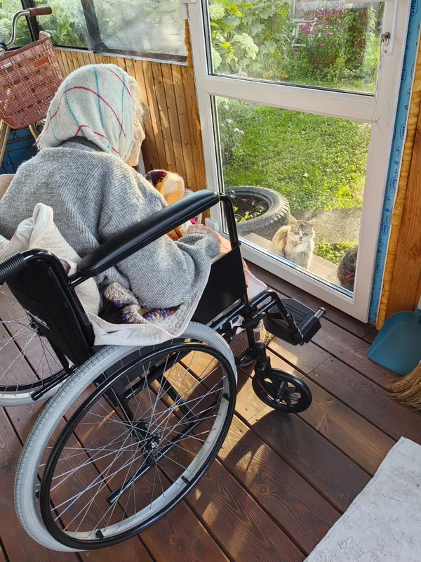 Хорошая коляска.пожилой человек легко справляется с ней самостоятельно