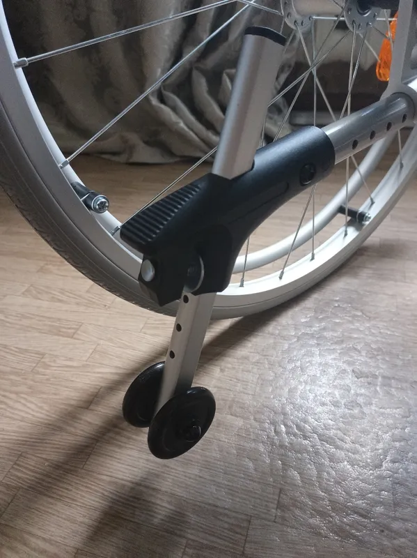 Коляска очень маневренна в управлении и на дороге. Недостатков почти нет, кроме антиопркидывателей, очень низко сидят, из-за этого невозможно преодолевать пороги и бордюры, задним ходом. Решение: снять трубы с антиопрокидывателями и подогнать (отпилить трубу в нижней части на столько, какая у вас высота препятствий порогов). Затем просверлить отверстие в трубе и собрать роликовые опоры). Снимать антиопрокидыватели не рекомендую, иногда приходится жёстко прыгать задним ходом с бордюров, антиопрокидыватели хорошо справляются. Конечно по гравийной дороге тоже на ней не очень, амортизации колёс здесь нет, поэтому будет чувствоваться каждый камень. В целом неплохая коляска. Выносливая.